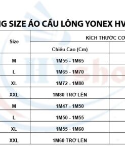 Áo cầu lông Yonex sản xuất với đa dạng các size từ M cho tới XXL, phân riêng form áo nam và nữ giúp bạn dễ dàng lựa chọn chiếc áo vừa vặn nhất với phong cách và số đo của mình.