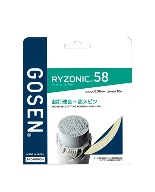 Gosen Ryzonic 58 được làm từ chất liệu dây nylon đa sợi kết hợp với dây bện đơn cùng lớp phủ chuyên dụng. Nhờ cấu tạo đặc biệt, cước giúp bề mặt vợt hoạt động như một chiếc máy bắn đá với những pha smash đáng kinh ngạc. Hơn nữa, tiếng nổ lớn của cước mang lại cực đã tai, gia tăng cảm giác phấn khích của người chơi trên sân đấu. Khả năng trợ lực, âm thanh và độ nảy của cước được đánh giá ở mức tối đa 10/10.