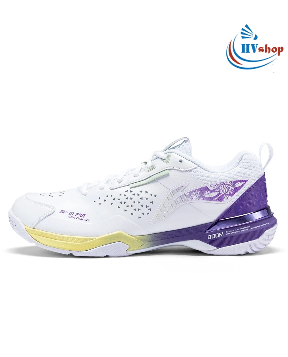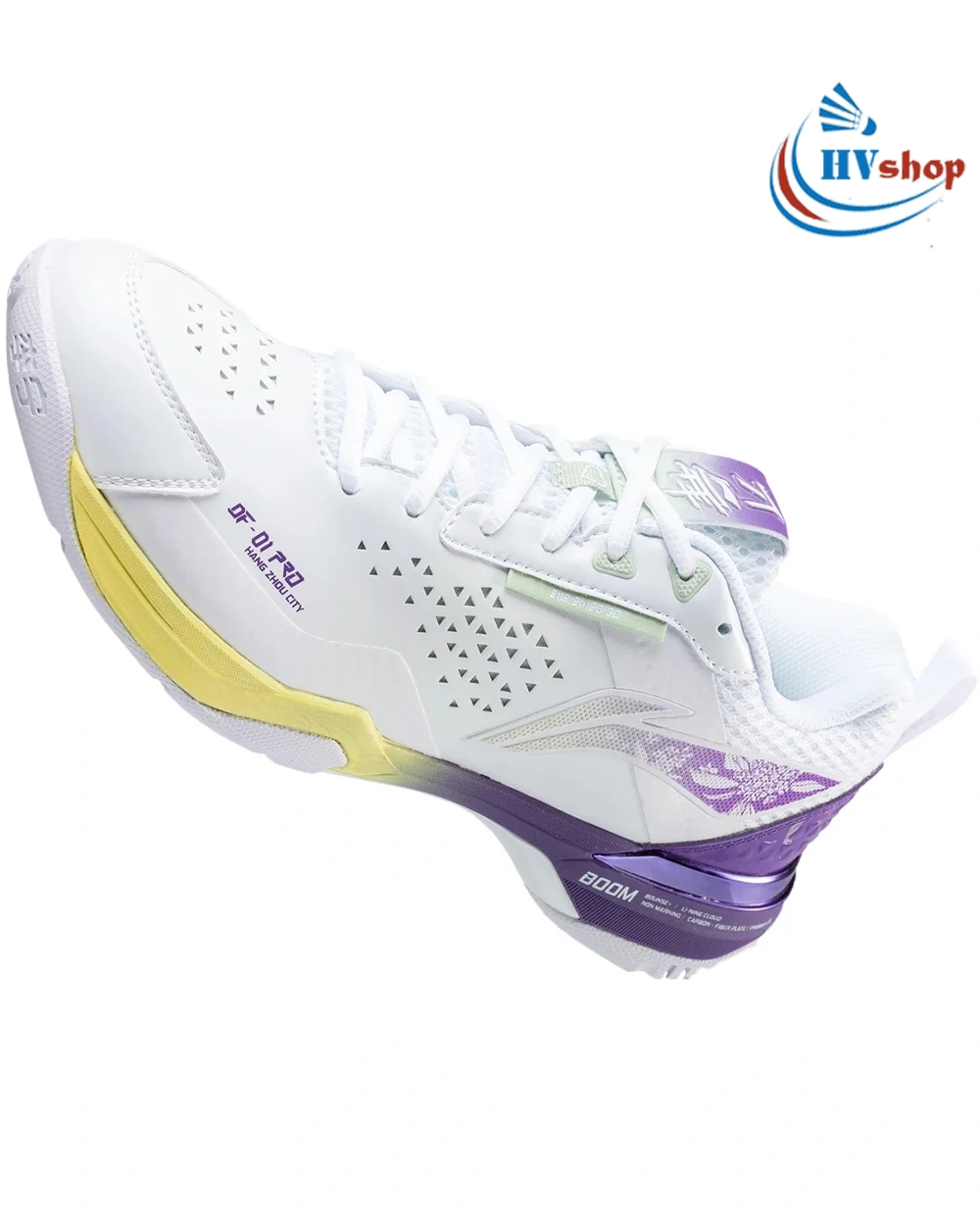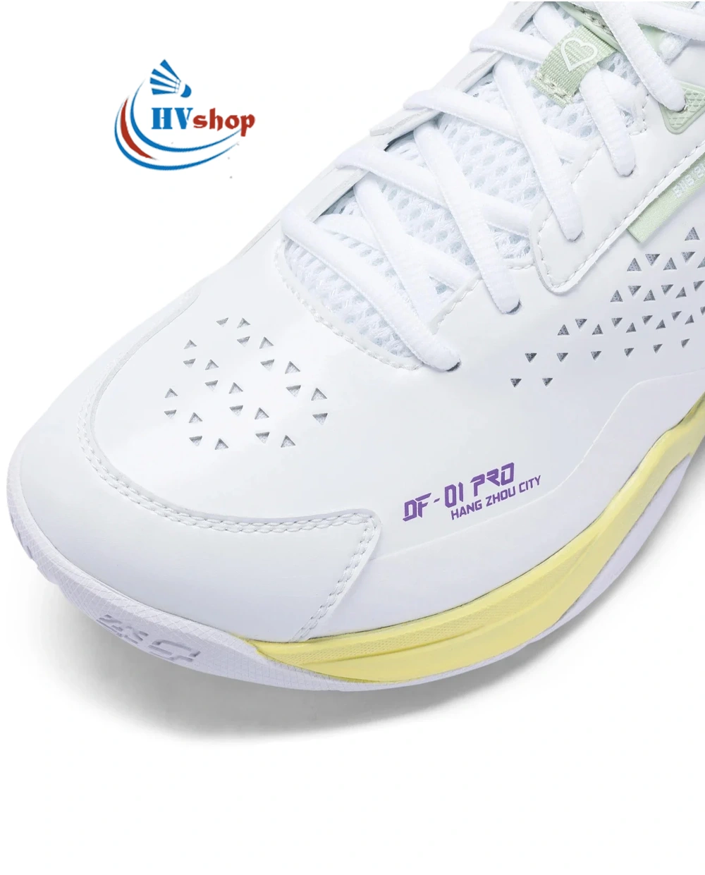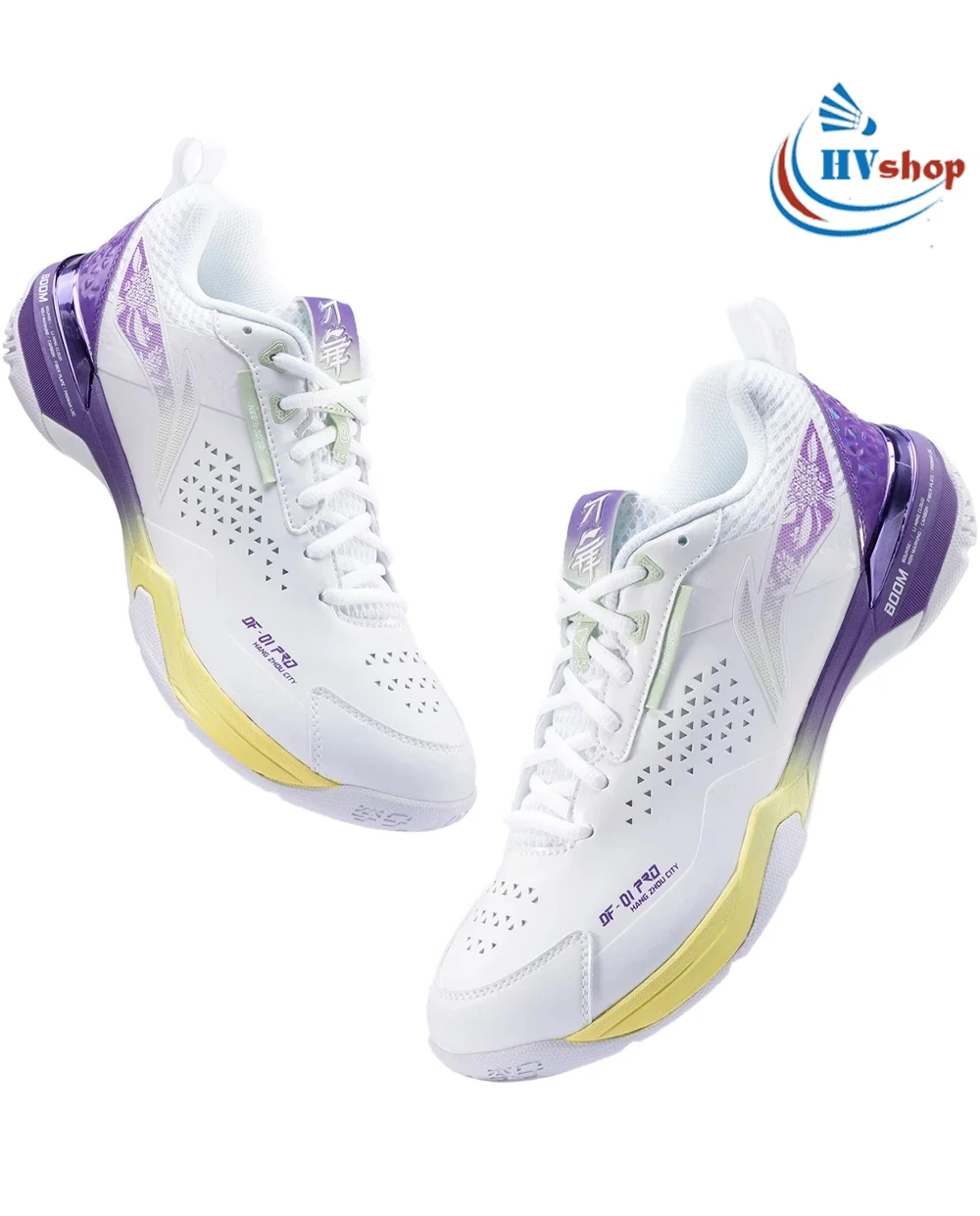 Ngay từ cái nhìn đầu tiên, giày cầu lông Li-Ning AYAT005-6 đã gây ấn tượng với thiết kế hiện đại khi sử dụng gam màu trắng và tím chủ đạo, mang đến vẻ đẹp thanh lịch nhưng vẫn nổi bật trên sân. Điểm nhấn của mẫu giày này là logo Lining được kết hợp với họa tiết hoa cách điệu, tạo nên sự độc đáo và tinh tế.