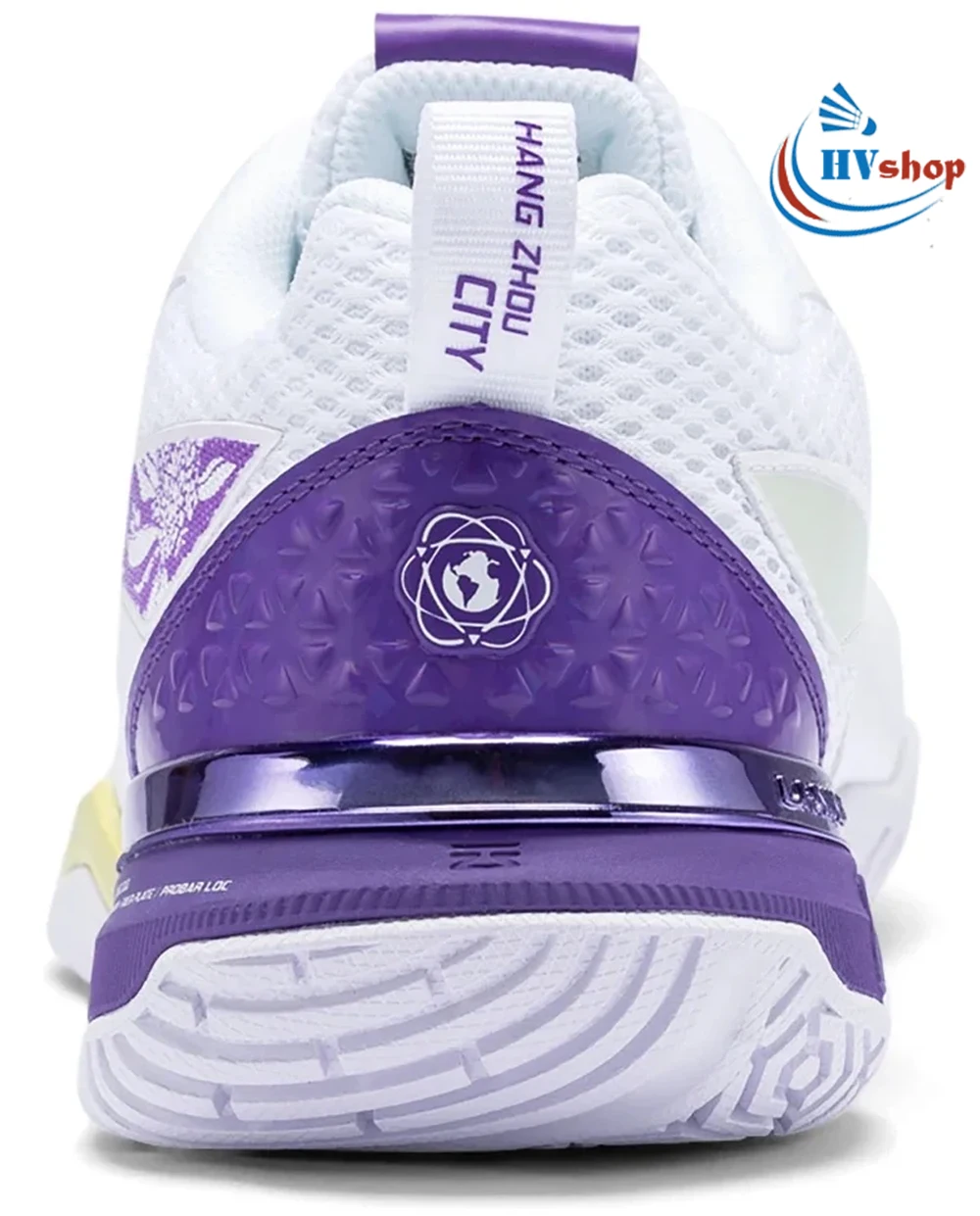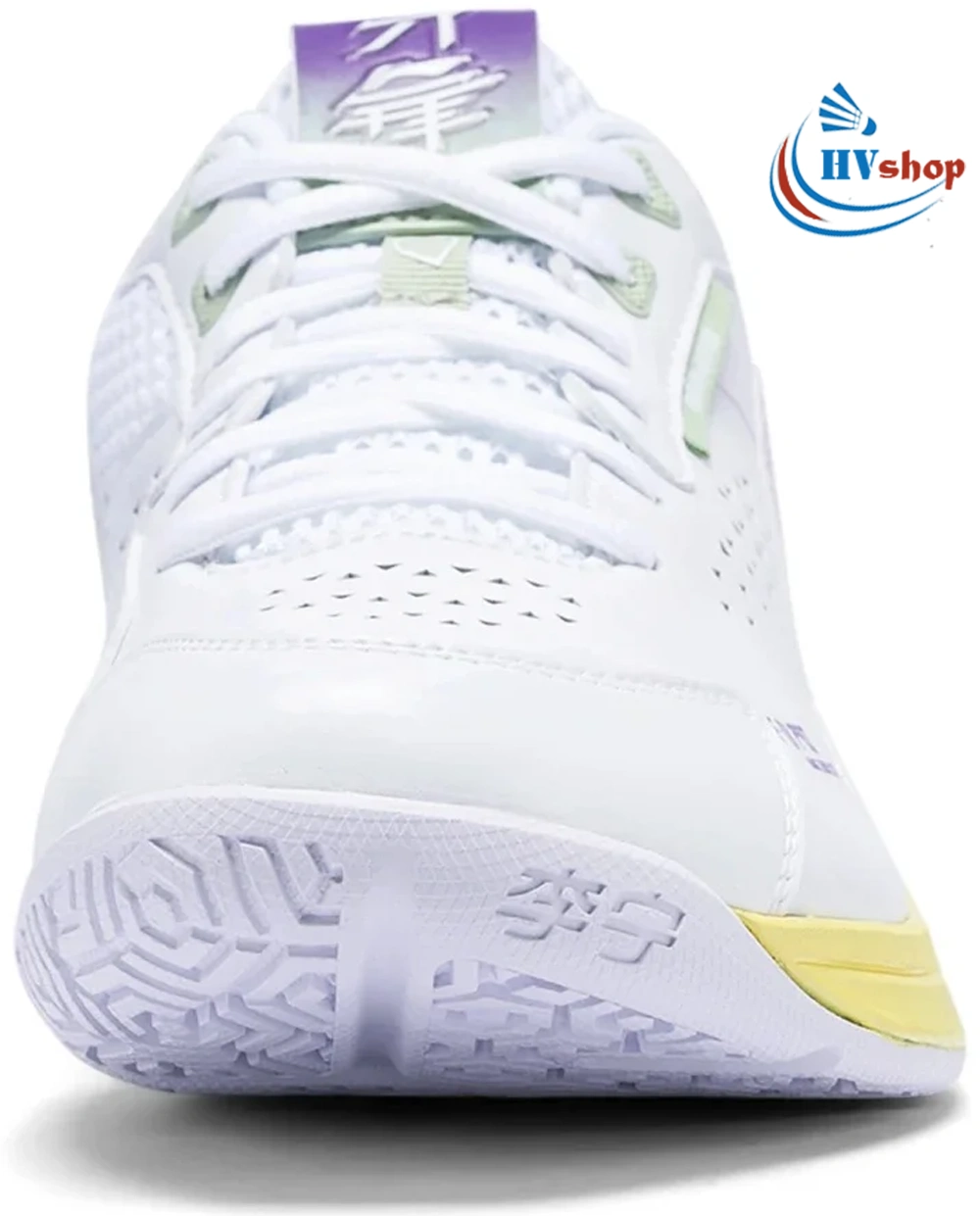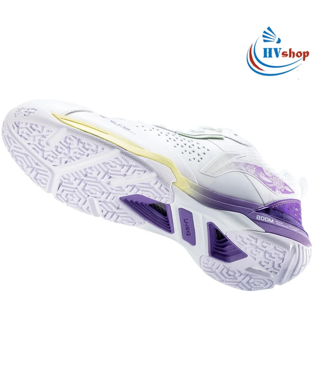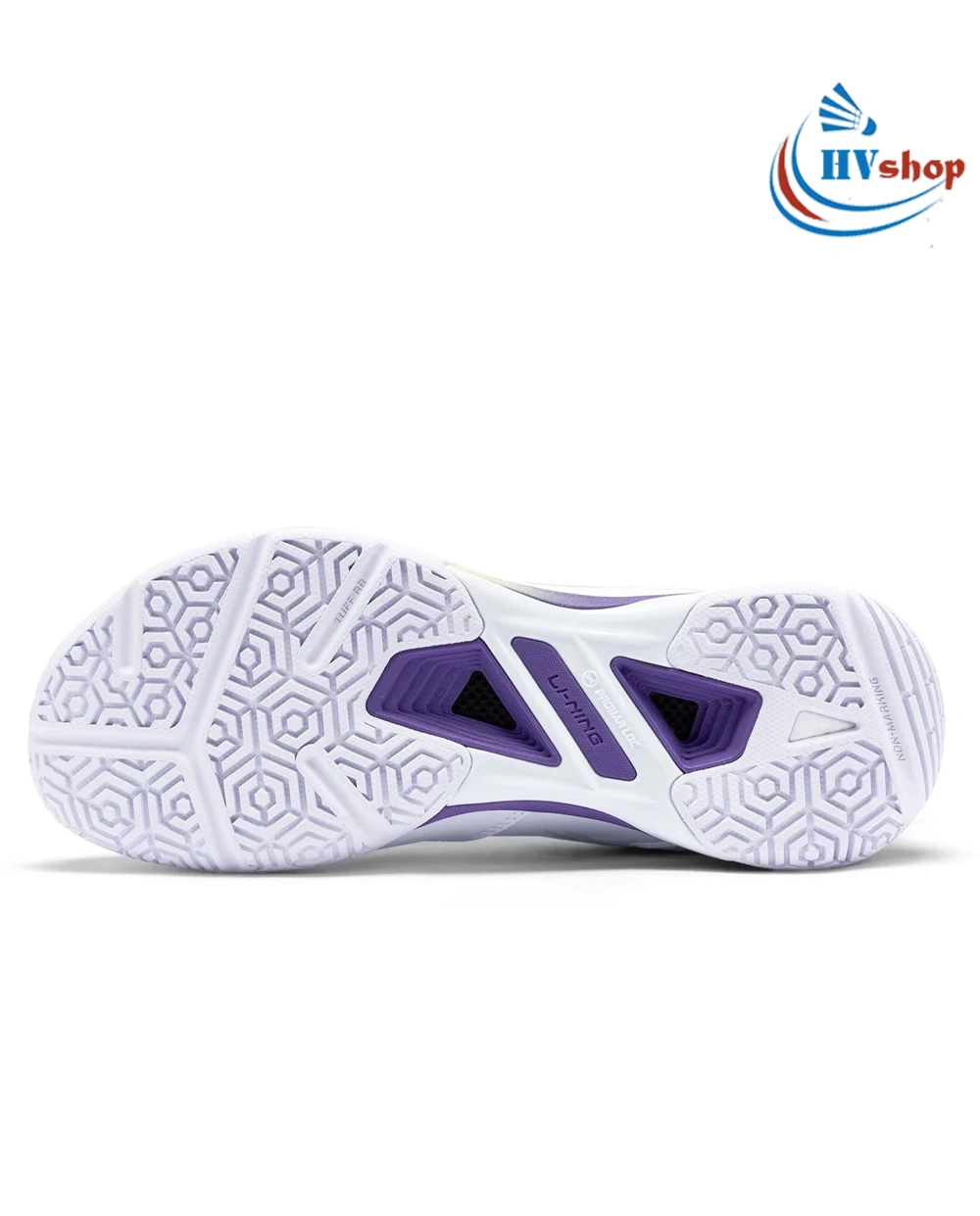 Phần đế ngoài bằng cao su có độ bám sân tốt, mang lại sự tự tin khi thực hiện các bước di chuyển ngang hoặc lên lưới. Thiết kế phần cổ giày ôm vừa mắt cá, tạo cảm giác chắc chắn và an toàn. Ngoài ra, điểm cộng lớn chính là ngoại hình của đôi giày phối màu trắng – tím hiện đại, cùng logo Lining cách điệu hoa nổi bật, khiến đôi giày vừa đẹp mắt vừa cá tính.