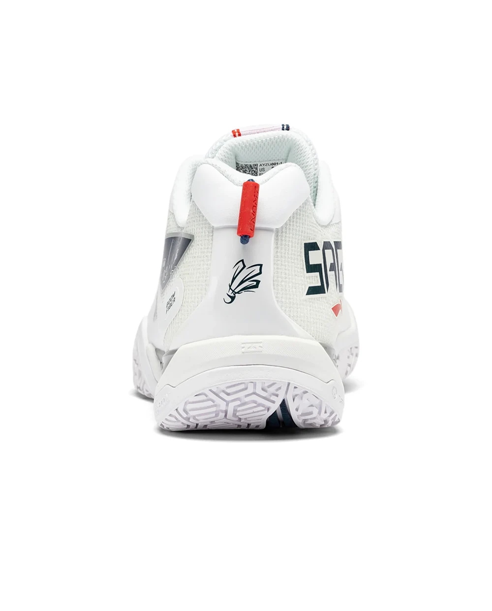 Đôi giày gây ấn tượng mạnh mẽ với gam màu trắng chủ đạo mang lại cảm giác tinh khiết và hiện đại, dễ dàng kết hợp với nhiều trang phục thi đấu khác nhau. Các chi tiết được xử lý tinh xảo trên thân giày cầu lông tạo nên sự hài hòa giữa tính thẩm mỹ và sự năng động, giúp sản phẩm không chỉ là một công cụ thi đấu mà còn là phụ kiện thời trang nổi bật. Logo Lining quen thuộc được đặt khéo léo như điểm nhấn thương hiệu, vừa tạo sự nhận diện vừa khẳng định đẳng cấp.