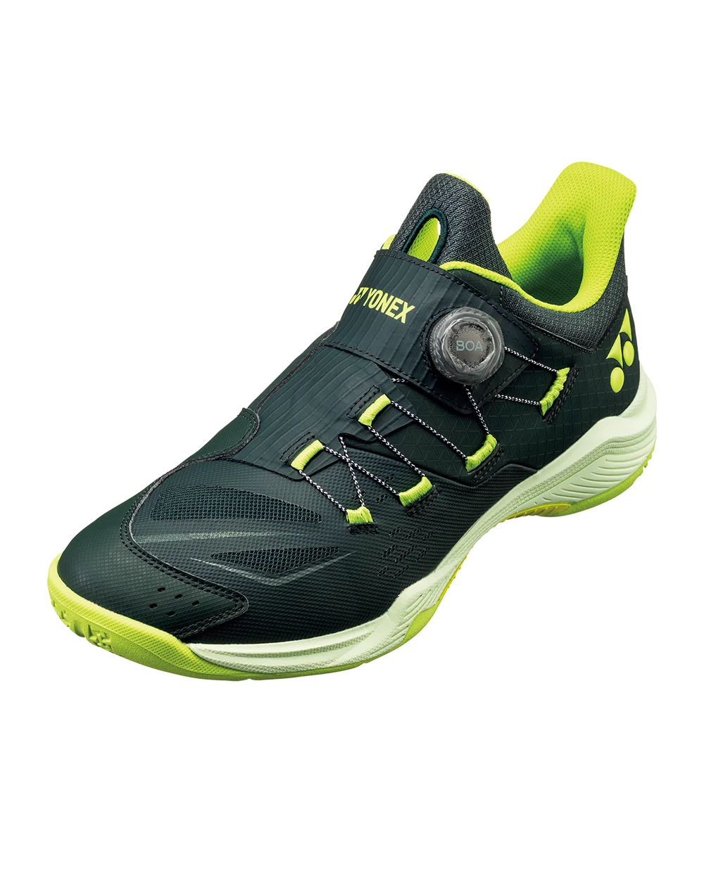 Giày cầu lông Yonex 88 Dial 3 2025 chính hãng. Thiết kế núm xoay BOA tiện lợi, phối màu đen xanh chuối ấn tượng, hỗ trợ tốc độ và sự ổn định tối đa.
