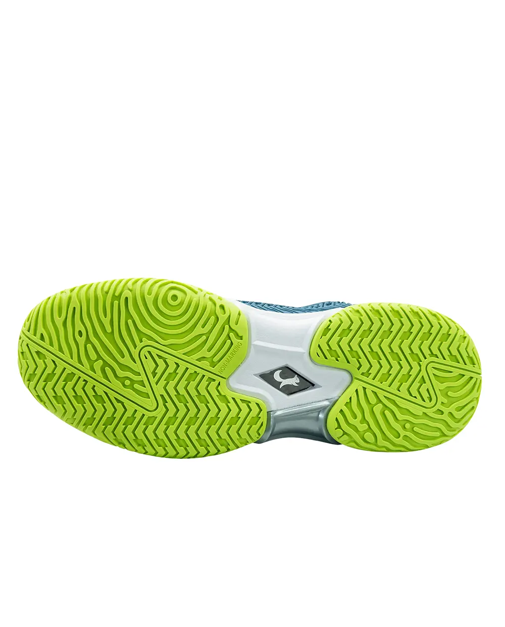 Đế cao su non-marking cho độ bám tốt trên cả sân trong nhà lẫn ngoài trời, hỗ trợ tốt các pha dừng gấp và đổi hướng, trong khi vẫn đủ độ “trơn” để bàn chân xoay tự nhiên, giảm áp lực lên khớp gối và mang lại cảm giác kết nối chặt chẽ với mặt sân.