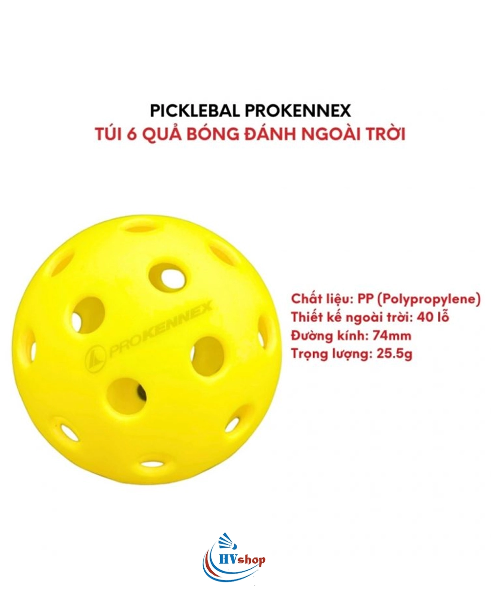 Thông số kỹ thuật Set 06 bóng Pickleball Prokennex PK40 Outdoor