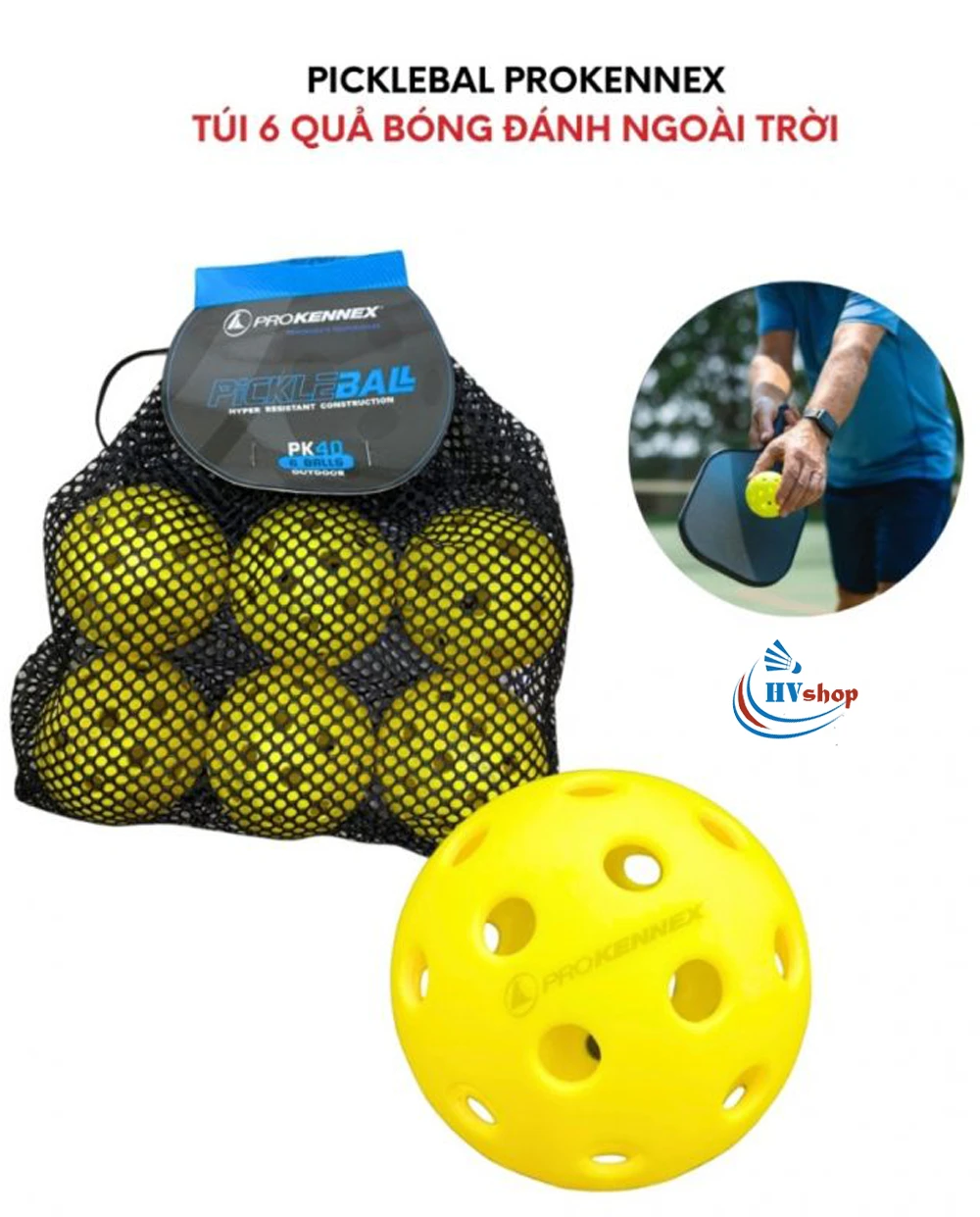 - set 06 bóng pickleball Prokennex PK40 Outdoor với chất lượng tiêu chuẩn, độ bền cao cùng giá thành hợp lý phù hợp với hoạt động tập luyện, giải trí hằng ngày và chuyên nghiệp.