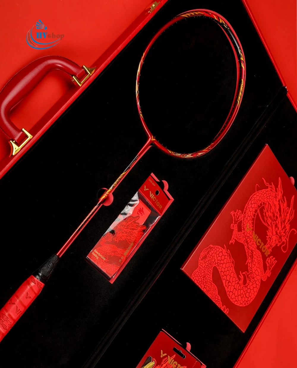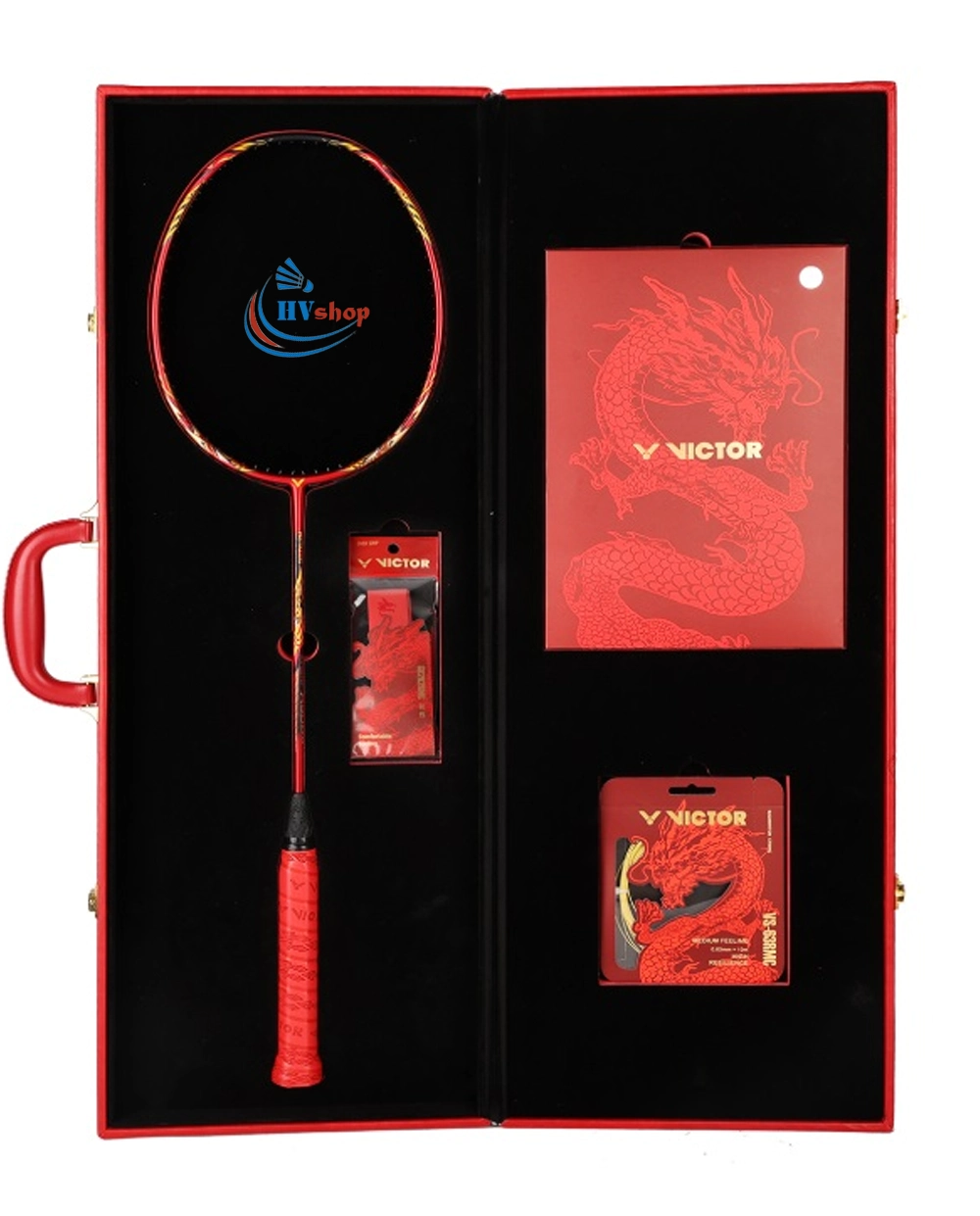 Bộ sản phẩm bao gồm một siêu phẩm vợt cầu lông Victor Ryuga Metallic CNY GB cao cấp, đi kèm túi đựng vợt, bộ cước và quấn cán. Tất cả được đặt trong một chiếc hộp vuông vức vô cùng sang trọng và đẳng cấp.