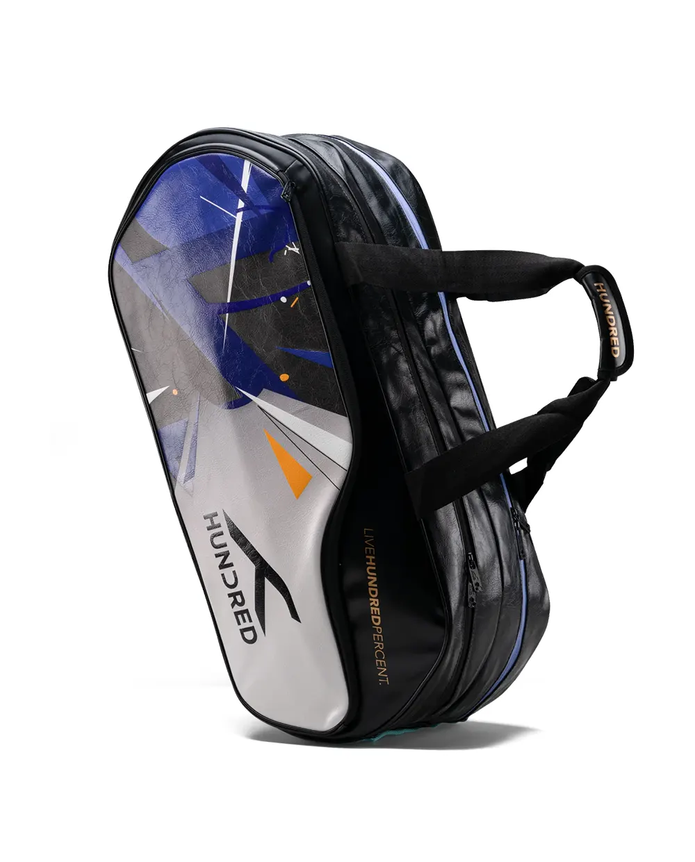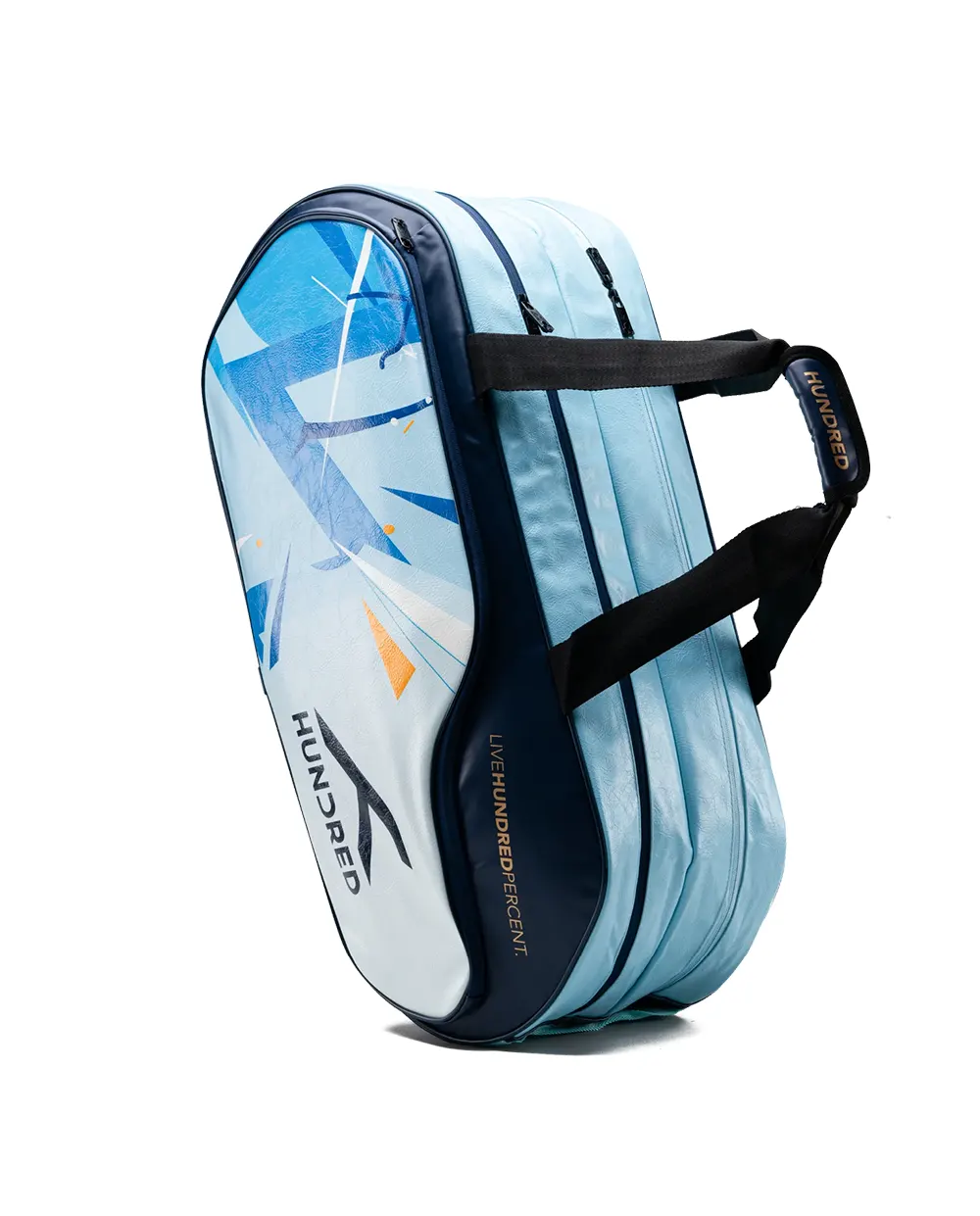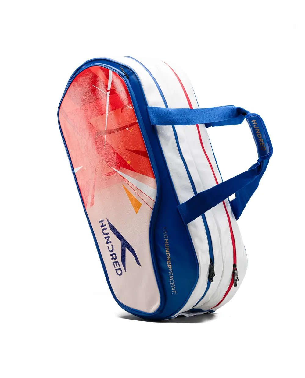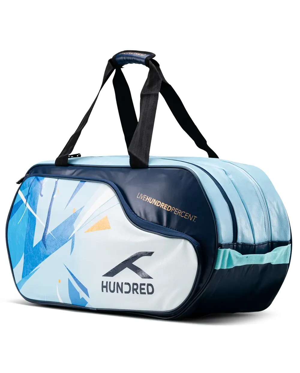 Túi vợt Hundred có form dáng hình khối chữ nhật vững chãi, chắc chắn. Hệ thống ngăn chứa khoa học bao gồm 3 ngăn chính cho phép người chơi tách biệt hoàn toàn giữa vợt, trang phục và giày.