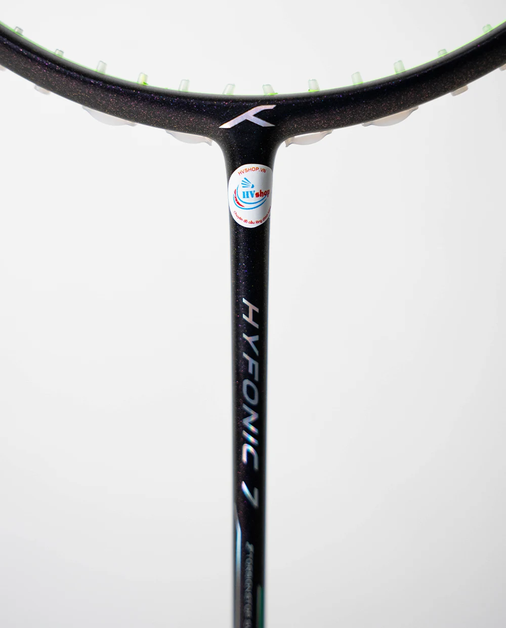 Điểm “ăn tiền” nhất của Hyfonic 7 nằm ở thiết kế Dual Aerodynamic Frame (Khung khí động học kép). Cấu trúc này cho phép luồng không khí trượt qua khung vợt mượt mà theo cả hai hướng vung, giúp giảm thiểu tối đa lực cản gió. Kết quả là người chơi có thể thực hiện những pha điều cầu, phông cầu với quỹ đạo ổn định và độ chính xác cao.