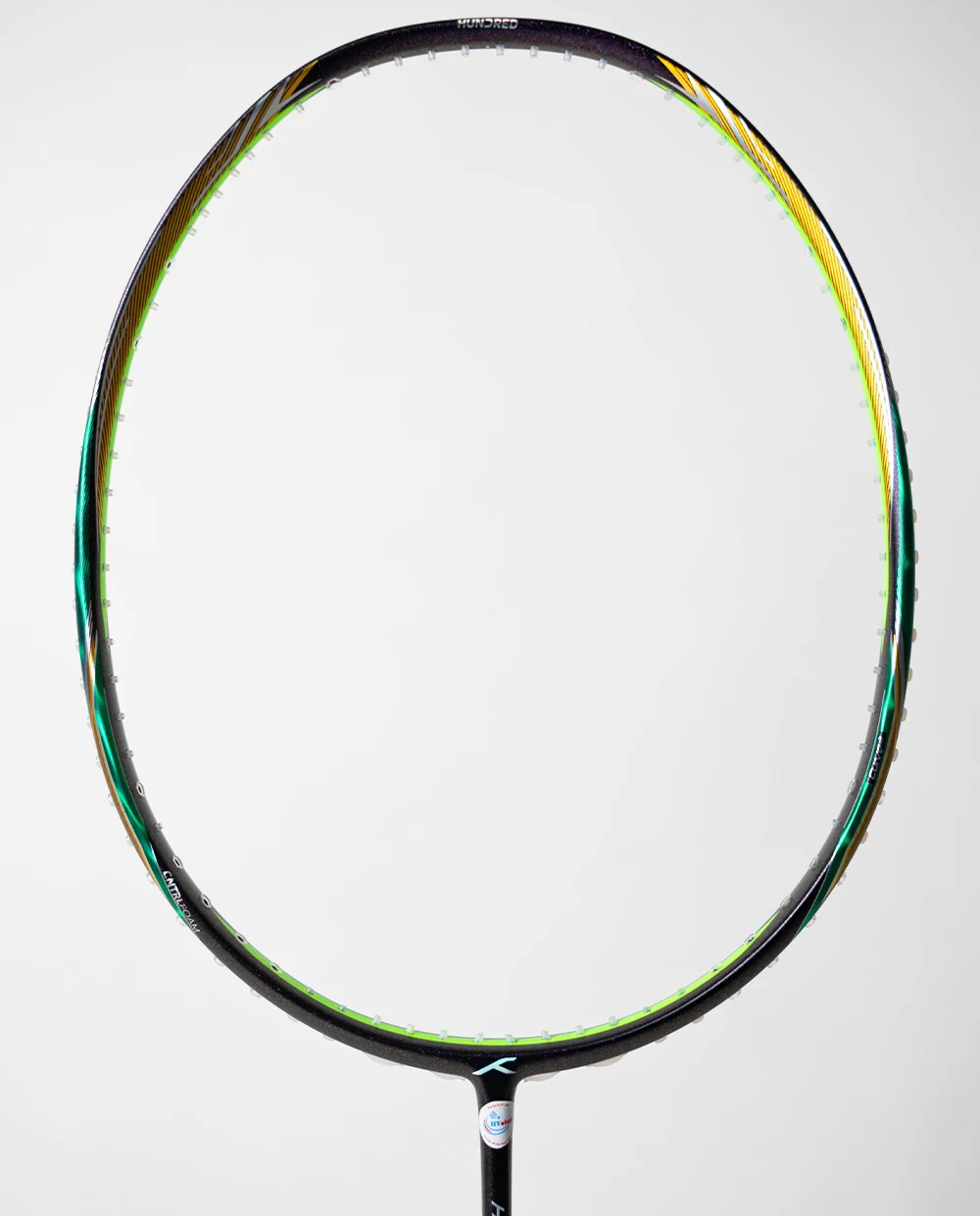 Về đặc tính kỹ thuật, Hundred Hyfonic Lazer sở hữu điểm cân bằng nặng đầu (Head Heavy) kết hợp cùng khung khí động học kép. Thiết kế này giúp tối ưu hóa đường đi của cầu: các pha ra vợt gọn gàng, sắc lẹm và ít hao tổn thể lực. Dù là những cú nâng cầu hay phản tạt, vợt cầu lông vẫn giữ được hiệu suất ổn định đáng kinh ngạc.