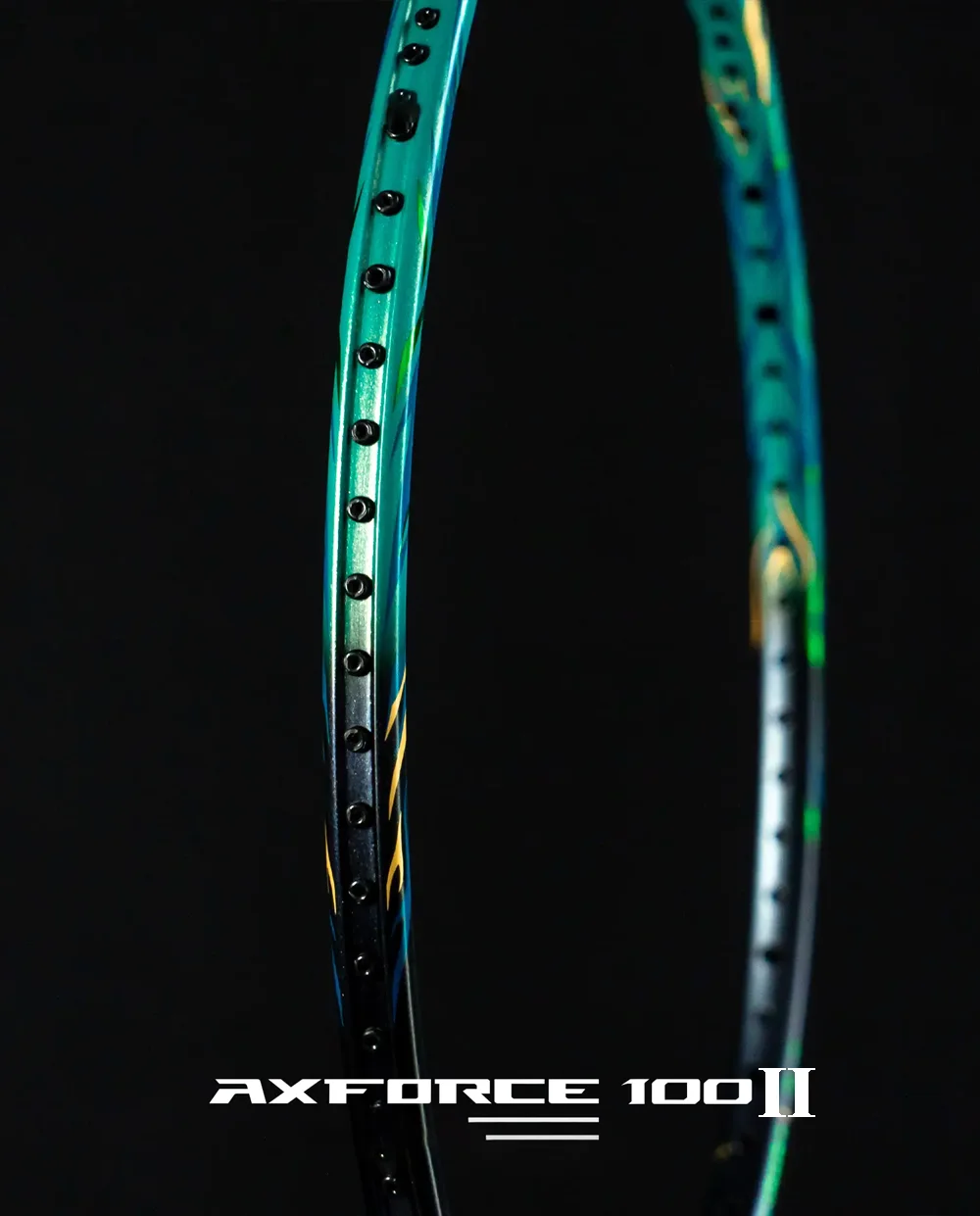 Khung vợt tinh chỉnh mỏng hơn ở đỉnh, dịch chuyển điểm cân bằng, tăng 12% sức mạnh khi vung. Ngoài ra, vật liệu carbon cao cấp Toray M46 và T1100 giúp tăng 8.5% độ ổn định và chính xác. Nhờ đó, AX 100 II trở thành một vũ khí tấn công mạnh mẽ nhưng vẫn kiểm soát tốt, phù hợp với tốc độ thi đấu chuyên nghiệp.