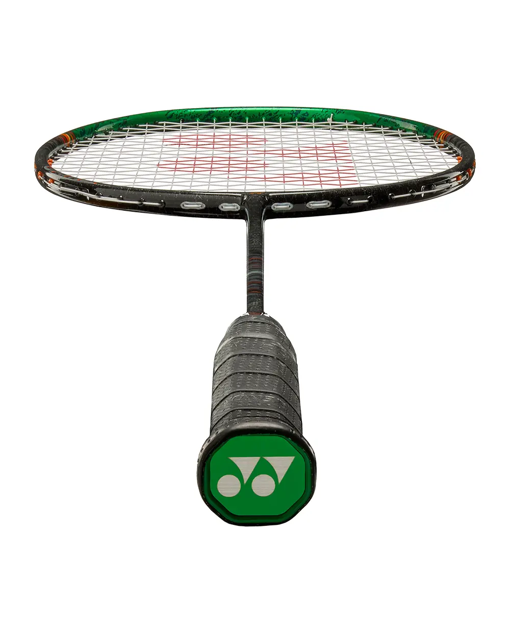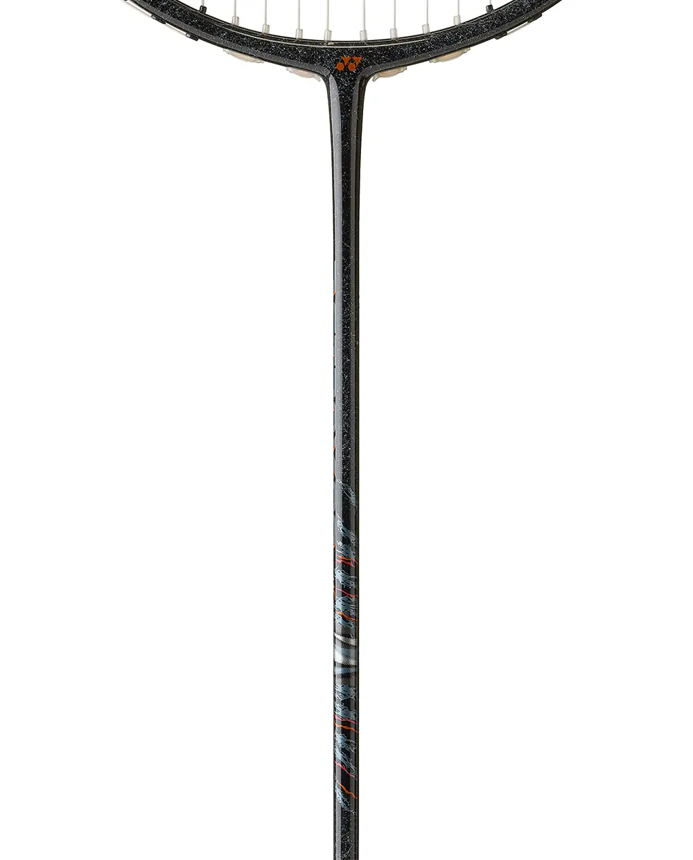 Về ngoại hình, cây vợt lấy cảm hứng từ hình ảnh thiên thạch va chạm, biểu tượng cho năng lượng bùng nổ. Nền đen chủ đạo điểm xuyết họa tiết vân đá cẩm thạch mang lại cảm giác chắc chắn, lì lợm. Các vệt màu cam đỏ chạy dọc khung vợt không chỉ tạo điểm nhấn thẩm mỹ mà còn tượng trưng cho sự truyền tải năng lượng mạnh mẽ trong mỗi cú smash.