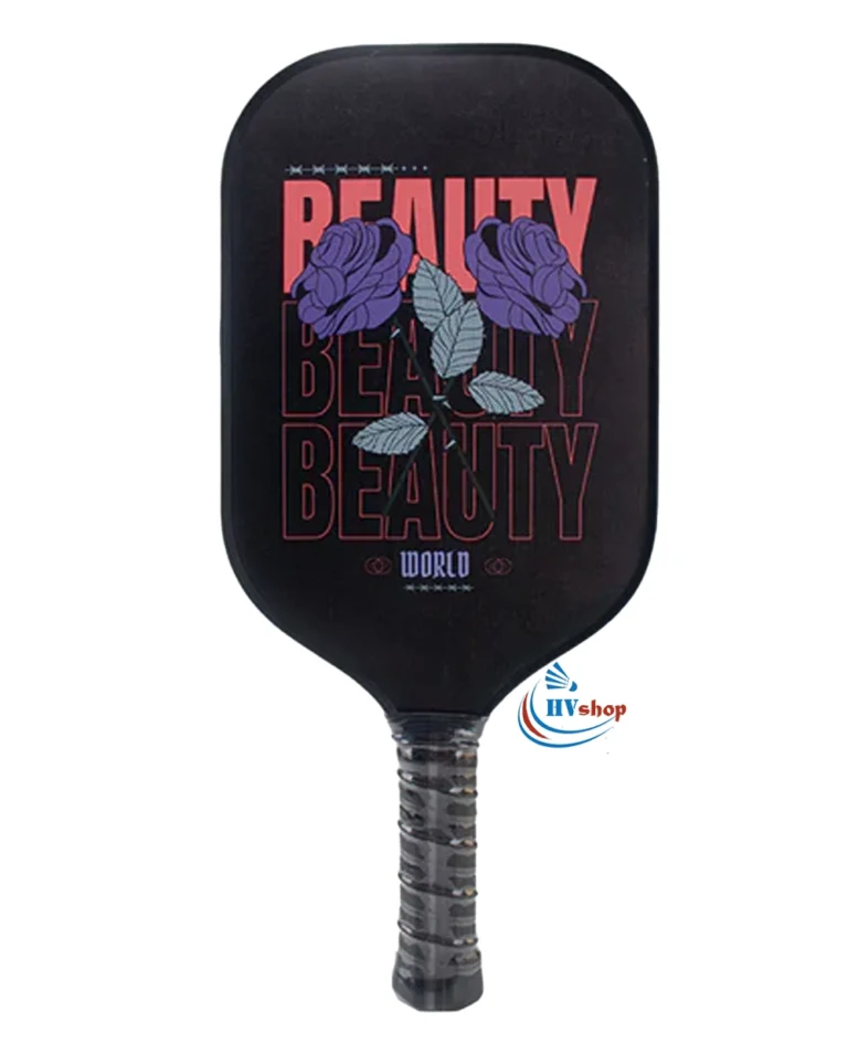 Beesoul Carbon Fiber STX2 có thiết kế vô cùng nổi bật và độc đáo, khác hoàn toàn với các cây vợt đánh pickleball khác trên thị trường. Hình ảnh bông hoa hồng cùng phong cách chữ cách điệu ở cả hai mặt vợt tạo vẻ đẹp thời thượng và bắt mắt như một phụ kiện thời trang chứ không chỉ là một dụng cụ thể thao khỏe khoắn, mạnh mẽ thường thấy.
