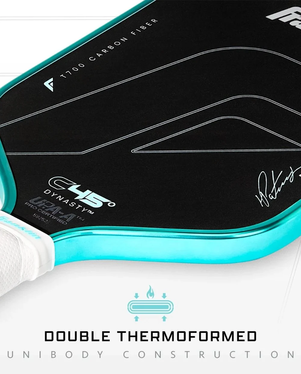 Double Thermoforming: Franklin C45 Hayden Patriquin sử dụng Quy trình Nhiệt luyện Kép, ép nóng hai lần để tạo cấu trúc đơn khối liền mạch giữa tay cầm và mặt vợt. Kết quả là vợt bền hơn, truyền lực hiệu quả, giảm rung và hạn chế nguy cơ gãy cổ vợt pickleball, đồng thời bảo vệ khuỷu tay người chơi.