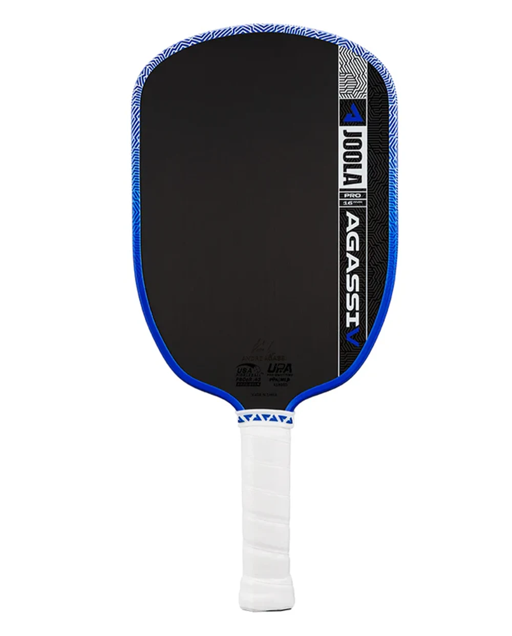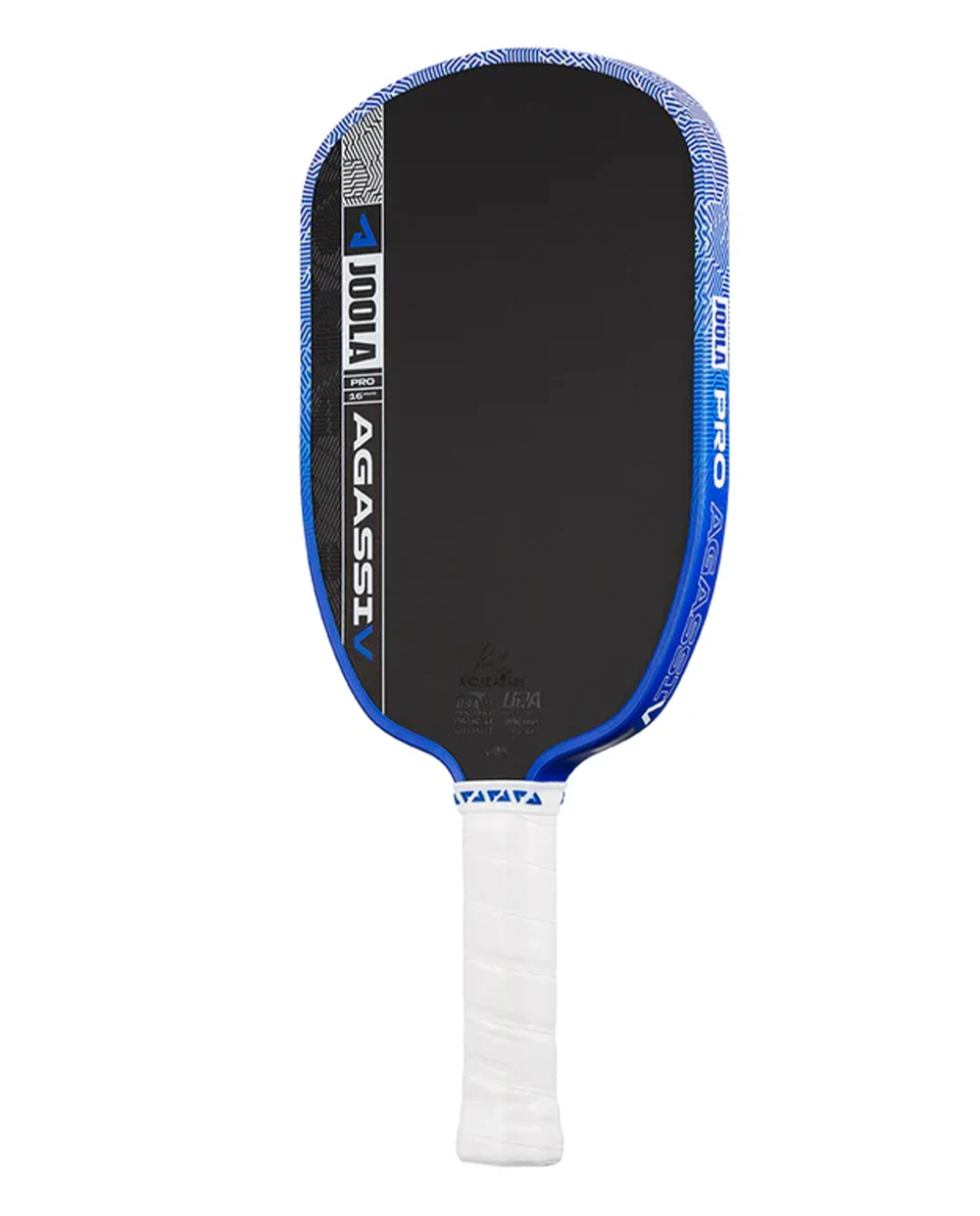 Không chỉ nổi bật về hiệu năng, JOOLA Agassi 5 còn thu hút ánh nhìn với gam xanh dương chủ đạo, điểm xuyết họa tiết vân cách điệu tinh tế ở phần đầu vợt. Đặc biệt, chữ ký của Andre Agassi được in trực tiếp trên bề mặt, góp phần nâng tầm giá trị và khẳng định đẳng cấp của siêu phẩm này.