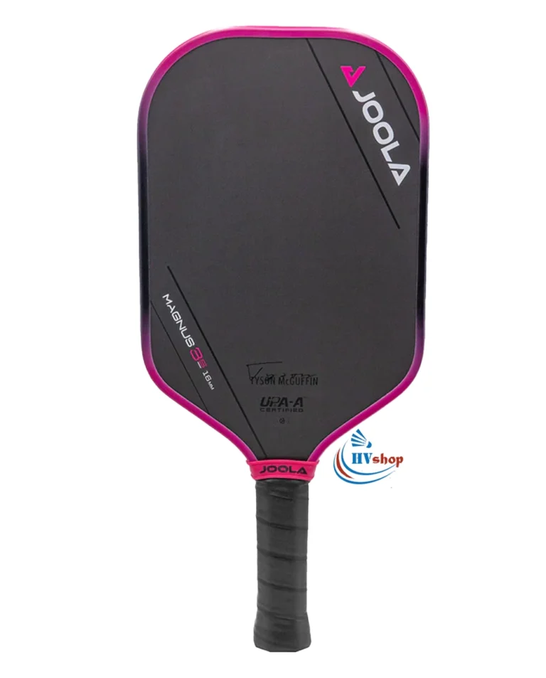 Ngoài ra, vợt Joola Tyson McGuffin Magnus 3S 16mm có thiết kế ấn tượng với tông màu đen chủ đạo, mang lại vẻ ngoài mạnh mẽ và sang trọng. Viền hồng nổi bật bao quanh vợt, tạo điểm nhấn tinh tế và cá tính.