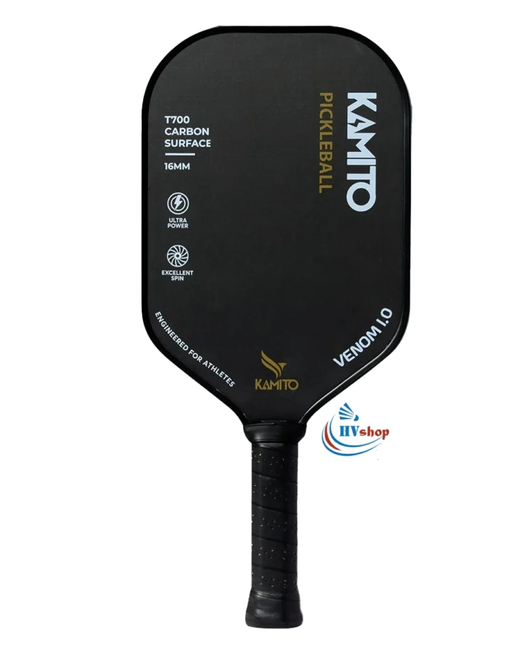 - Vợt pickleball Kamito Venom 1.0 hướng đến lối chơi tấn công linh hoạt, tốc độ, nhưng không làm mất đi khả năng kiểm soát phù hợp với những người yêu thích lối đánh chiến thuật.