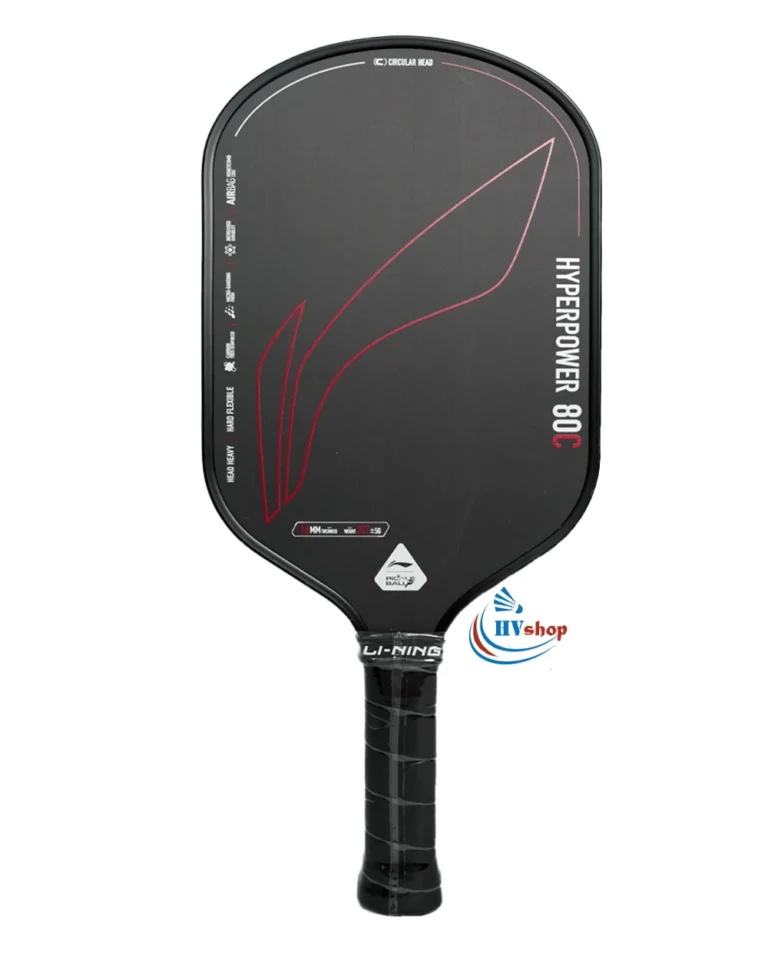 - Vợt pickleball Lining Hyper Power 80c Đen – 16 mm chính hãng là cây vợt hướng đến lối chơi tấn công, người ưa thích những cú đánh bóng mạnh mẽ, chính xác và spin tốt.