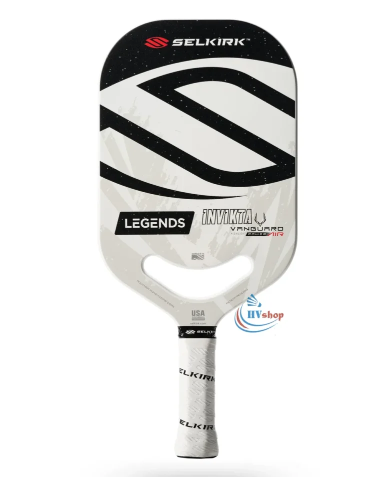 Selkirk Vanguard Power Air Invikta Legends là cây vợt cao cấp sở hữu lợi thế vượt trội về sức mạnh và độ xoáy. Cây vợt pickleball có trọng lượng 218.2 – 229.6 gam, mức trọng lượng trung bình phù hợp với đại bộ phận người chơi, đặc biệt là những ai có lực tay khá trở lên.