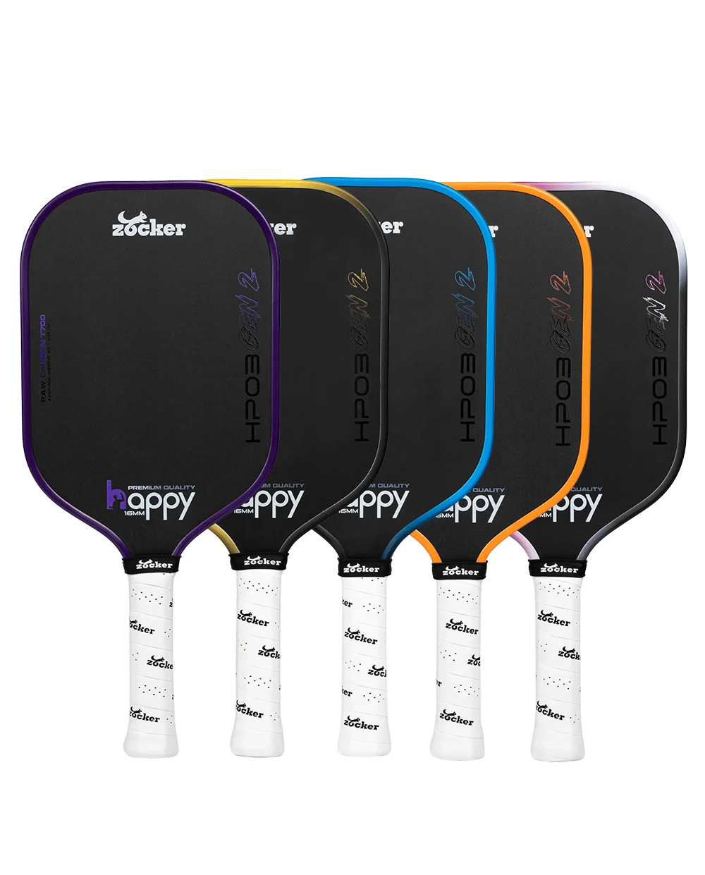 Zocker Happy HP02 Super Quality: Nằm ở phân khúc tầm trung, HP02 là một bước nâng cấp với mặt vợt làm từ 3 lớp carbon T700, mang lại hiệu suất tốt hơn. Đây là lựa chọn phù hợp cho những người chơi phong trào và bán chuyên muốn một cây vợt cân bằng với mức giá hợp lý.